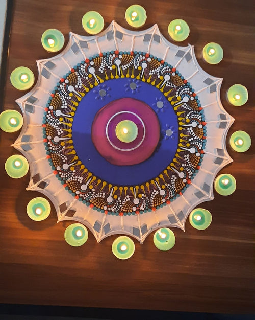 I’m Kajal, an acrylic and mandala artist creating hand-painted artworks inspired by devotion, balance, and beauty — each piece crafted with patience and purpose to bring peace and harmony into every space.